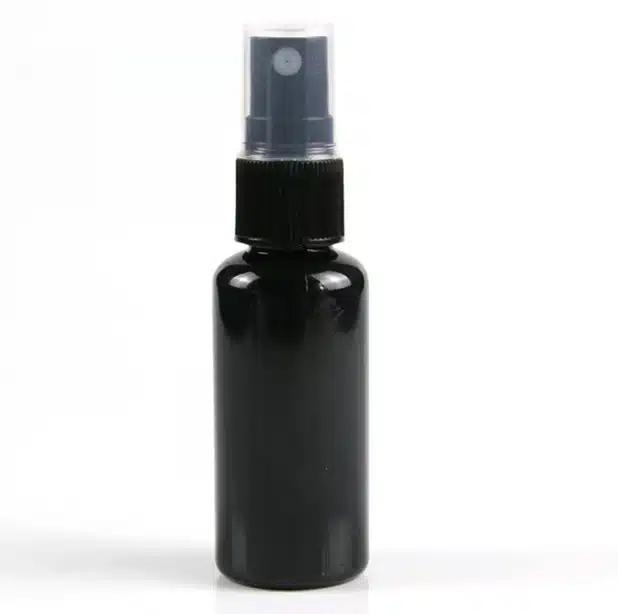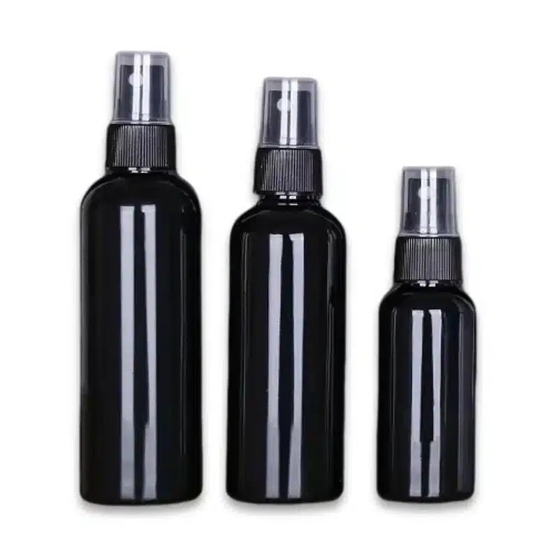 Flacon PET noir avec spray noir pour pulvérisation et emballage cosmétique