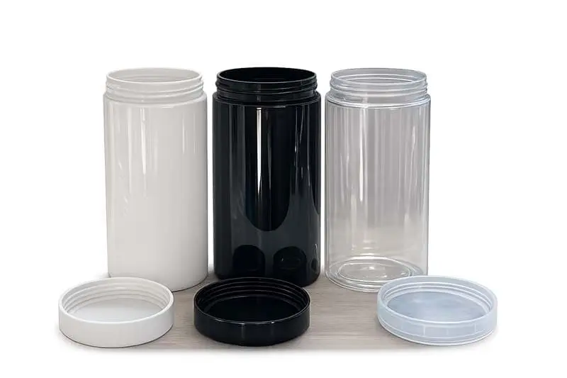 Pots en plastique alimentaire 400 ml cylindriques avec couvercle – Blanc, Noir et Transparent